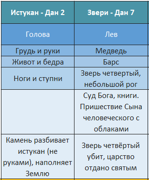 Как мы видели ранее в предыдущем разделе особенностью библейских пророчеств о последних временах этого Мира есть - параллелизм спаренных видений. Поэтому мы рассмотрим сразу два первых параллельных видения Даниила - главы 2 и 7.