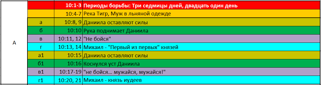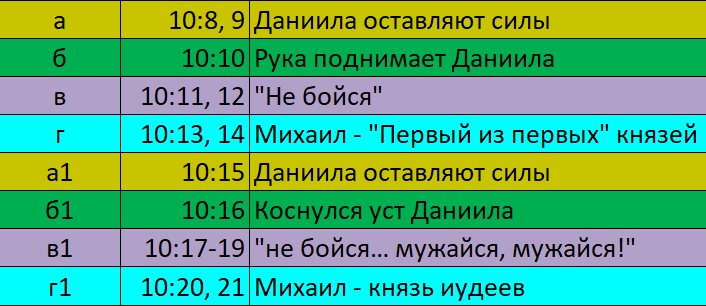 Первый диалог ангела и Даниила имеет строгую четырехслойную параллельную структуру.