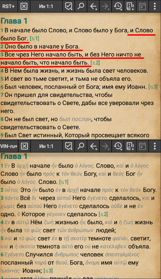 Ин 1:1-3,13-14: "В начале было Слово, и Слово было у Бога, и Слово было Бог. Оно было в начале у Бога. Все через Него начало быть, и без Него ничто не начало быть, что начало быть. И Слово стало плотью и обитало с нами, полное благодати и истины; и мы видели славу Его, славу, как Единородного от Отца."