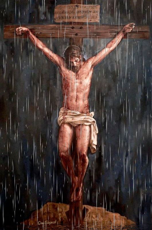 Христос умер не от ран, а от "разрыва сердца". Это говорит о необычных душевных страданиях. Эти "странные" страдания начались уже перед арестом - в Гефсимании (Лук.22:44): "И, находясь в борении, прилежнее молился, и был пот Его, как капли крови, падающие на землю".